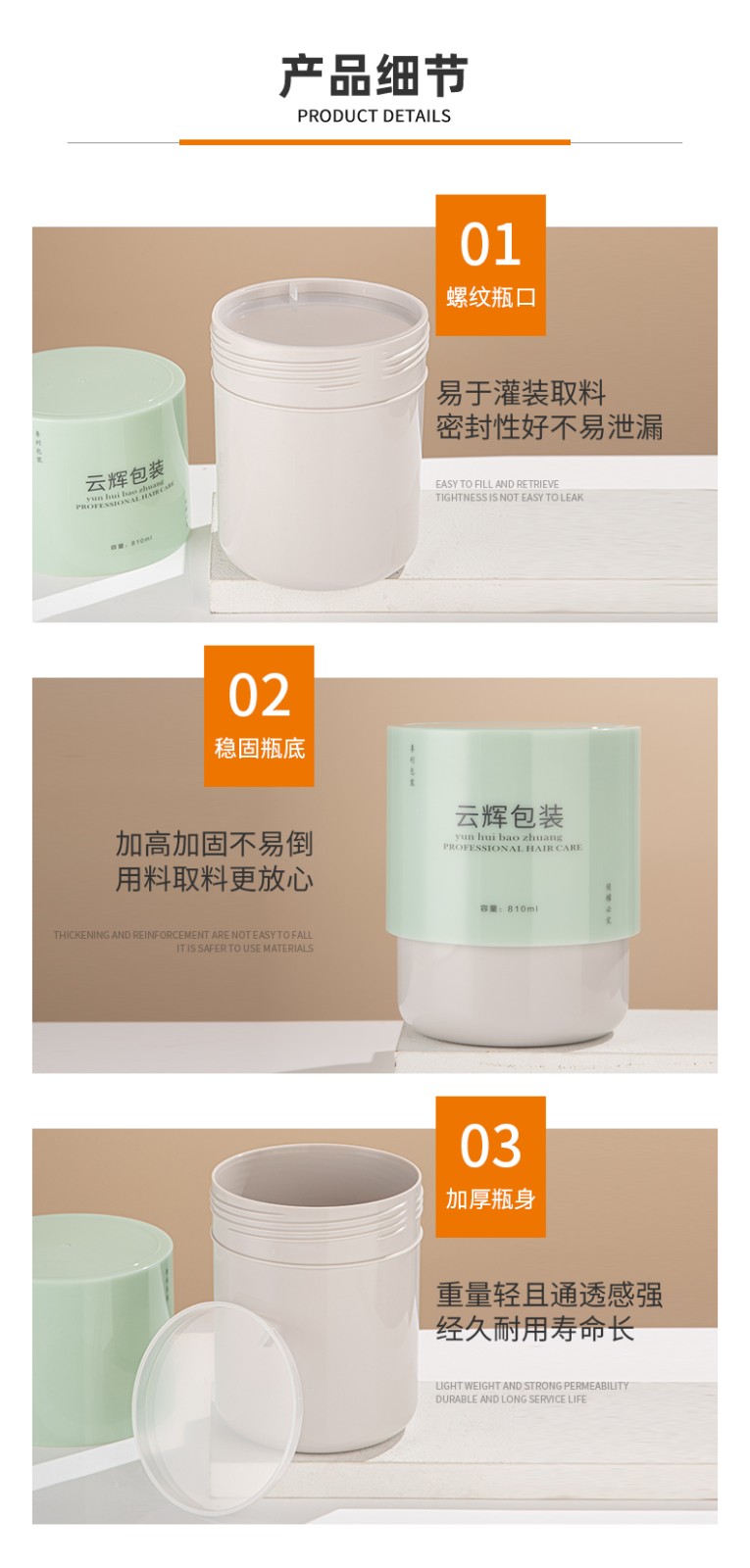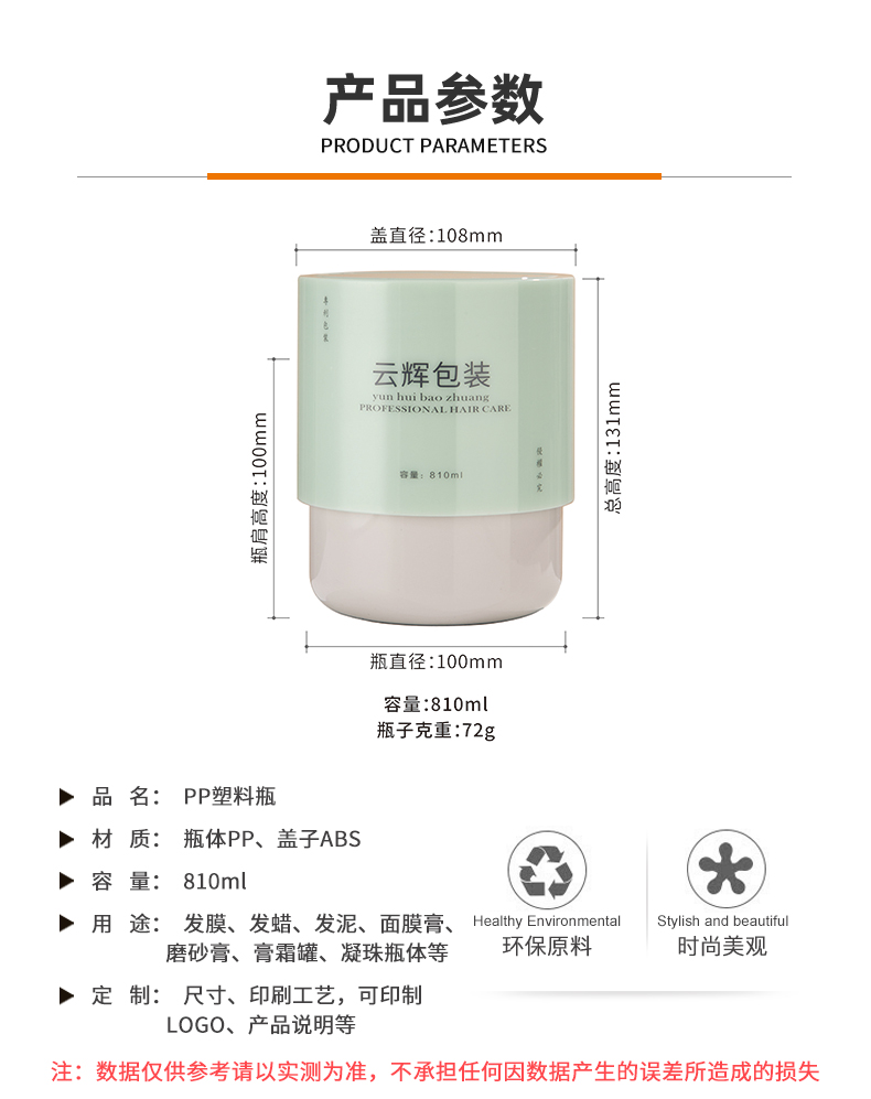• 810ml旋蓋泥膜瓶ABS化妝品包材凝珠瓶PP發(fā)膜發(fā)蠟罐膏霜罐,適用發(fā)膜、發(fā)蠟、發(fā)泥、面膜膏、磨砂膏、膏霜罐、凝珠瓶體等。