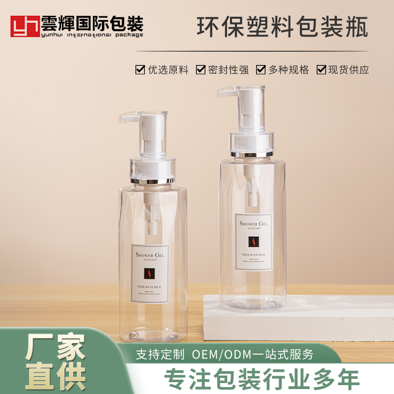 • 現(xiàn)貨300ml乳液按壓瓶 沐浴露瓶洗發(fā)水分裝瓶pet化妝品包材批發(fā),適用洗發(fā)水、沐浴露、護發(fā)素、身體乳、洗衣液等。